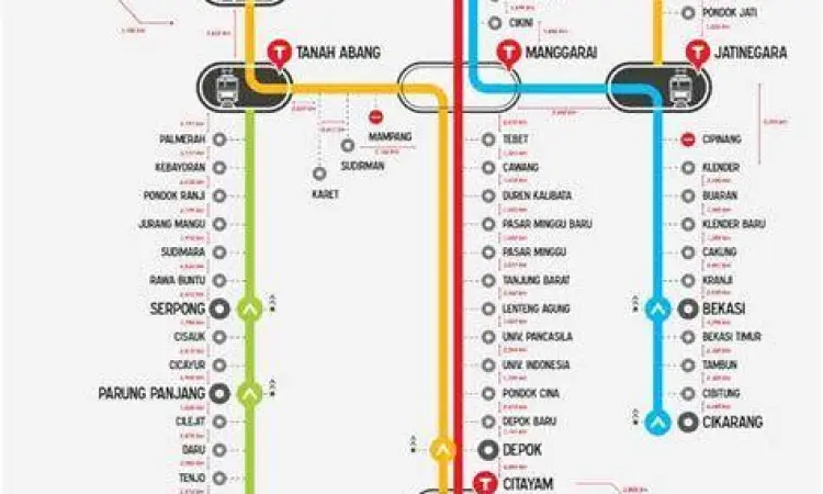 Bagi pengguna rute KRL Cikarang, stasiun transit adalah kunci untuk mencapai tujuan di luar jalur utama. Stasiun Manggarai berperan sebagai hub sentral di mana penumpang bisa berpindah ke jalur Bogor (Red Line) atau menuju Bandara Soekarno-Hatta. Sementara itu, Stasiun Jatinegara merupakan titik krusial bagi mereka yang ingin berpindah ke arah Senen atau menuju arah Bekasi/Cikarang kembali dari jalur lingkar.
